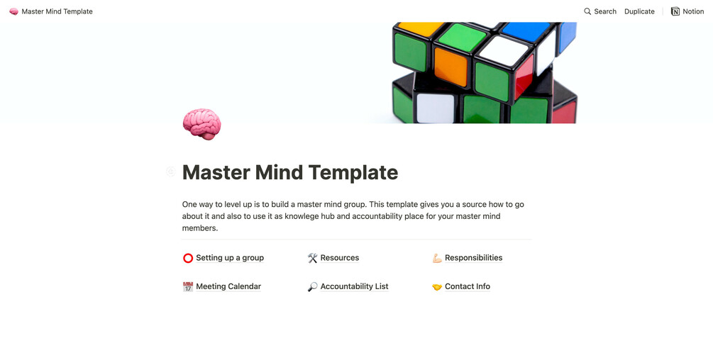 Have you ever thought about setting up your own Master Mind Group? This template will give you a quick idea on how to go about it and track the progress of your group. Of course, invite all your Master Mind members to your Notion page too!